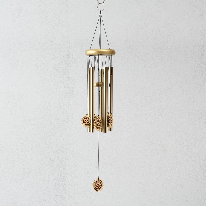 Музыка ветра металл, дерево "Символ Ом в солнце" 5 трубок 60 см