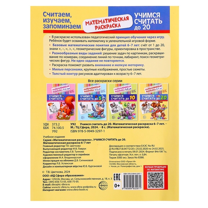 Раскраска математическая «Учимся считать до 20», 6-7 лет, чёрно-белая, ФОП ДО и ФГОС ДО