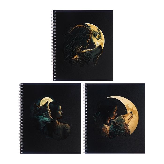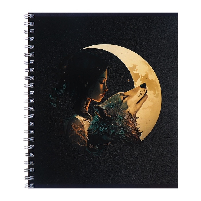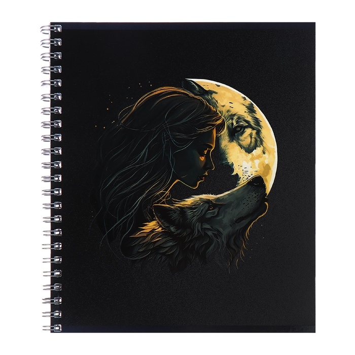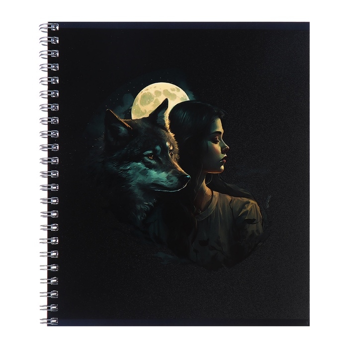 Тетрадь 48л кл на гребне Девушка с волком, обл мел карт, ТВИН+выб УФ-лак, блок офсет МИКС