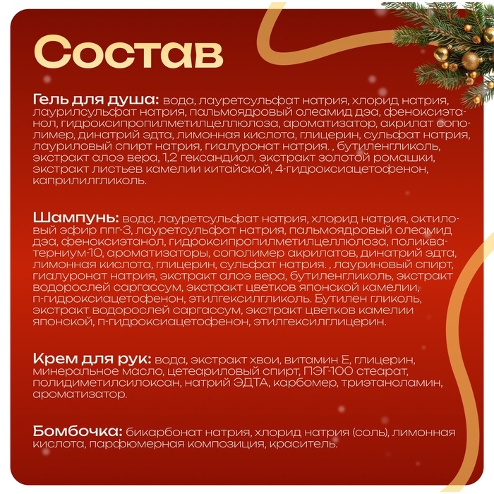 Новогодний набор — это идеальное сочетание продуктов для полноценного ухода за телом, которые дарят ощущение роскоши и заботы. Он идеально подойдёт как подарок на Новый год, который подчеркнёт ваше внимание и любовь к близким.