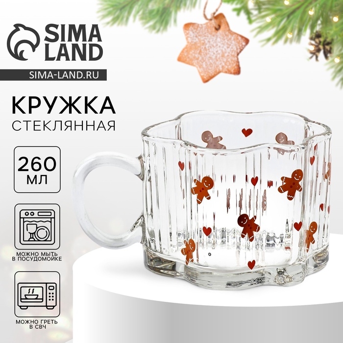 Кружка стеклянная новогодняя Дорого внимание «Прянечные человечки», 260 мл