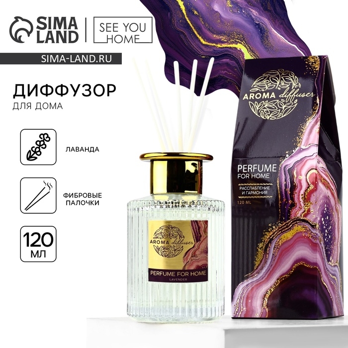 Диффузор ароматический палочки, ароматизатор для дома «Аромадиффузор: For home», аромат лаванда, 120 мл.