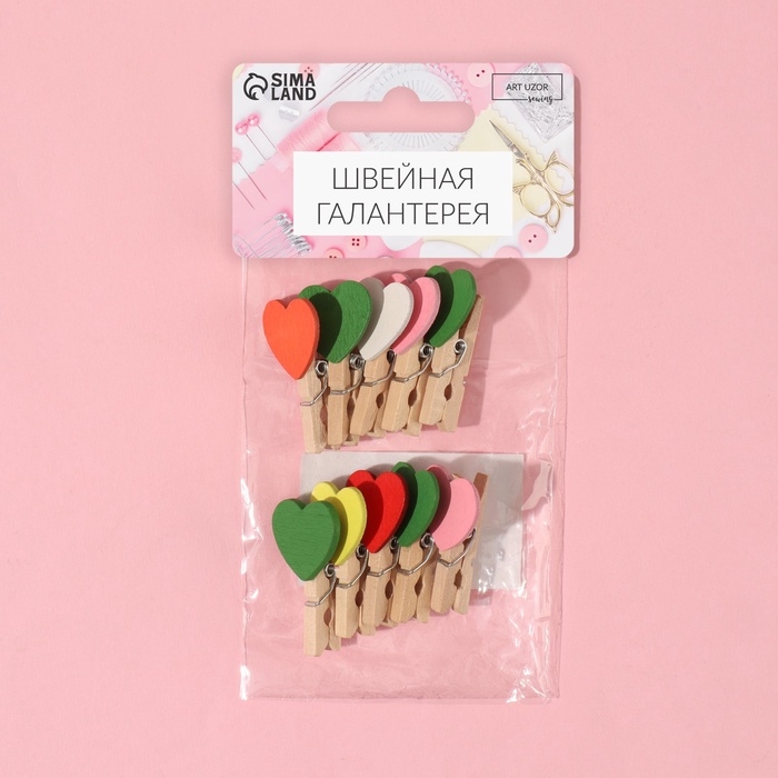 Прищепки для шитья «С сердцем», 3,5 × 2 × 1 см, 10 шт, цвет разноцветный