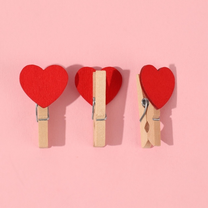 Прищепки для шитья «С сердцем», 3,5 × 2 × 1 см, 10 шт, цвет красный