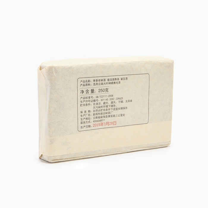 Китайский выдержанный черный чай Пуэр Шу "Старое дерево", 250 г, 2019 г, Мэнхай, кирпич