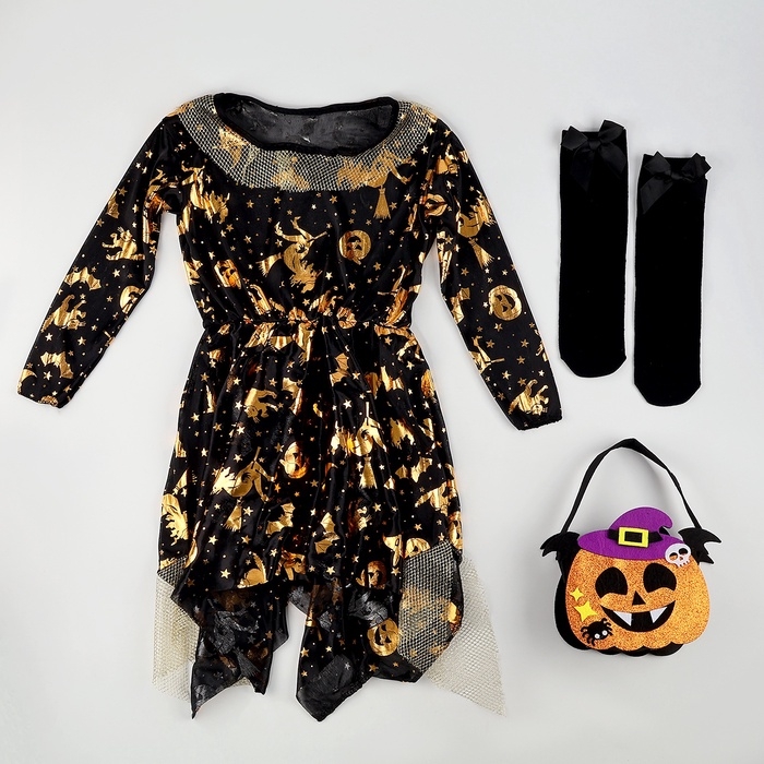 Карнавальный набор «Маленькая злодейка»: платье, шляпа, чулки, сумка, рост 110-116 см