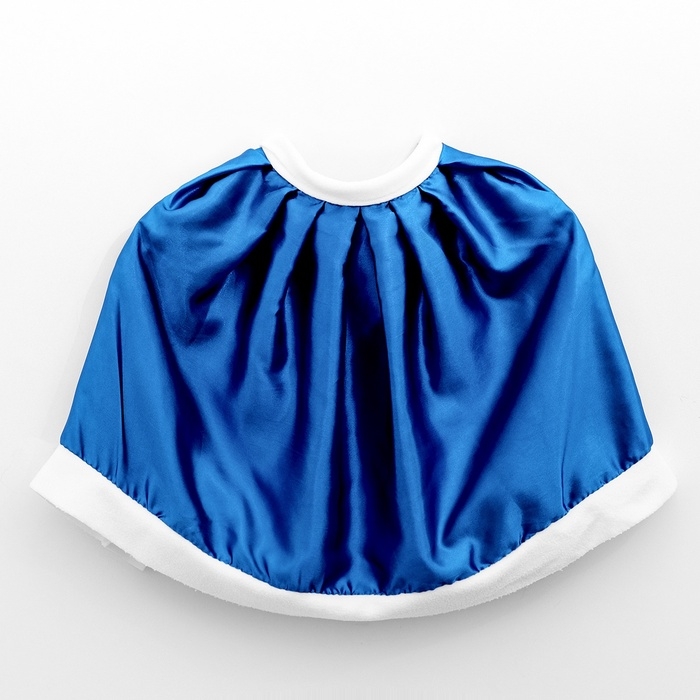 - Накидка: Лёгкая и воздушная накидка длиной 40 см выполнена из приятного материала. Голубой цвет и белые элементы создают нежный и волшебный образ. Накидка завязывается на шее.