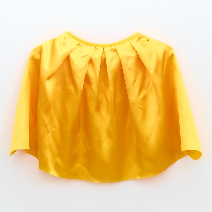 - Накидка. Накидка длинной 40 см выполнена в насыщенном жёлтом цвете. Она свободно надевается и фиксируется на шее с помощью завязок. Накидка из полиэстера лёгкая и воздушная, что обеспечит комфорт ребёнку даже в самый разгар веселья.