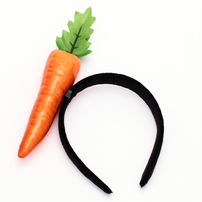 - Ободок. Стильный и мягкий ободок с объёмным изображением моркови станет завершающим штрихом костюма. Яркий и красочный, он привлечёт внимание всех окружающих.