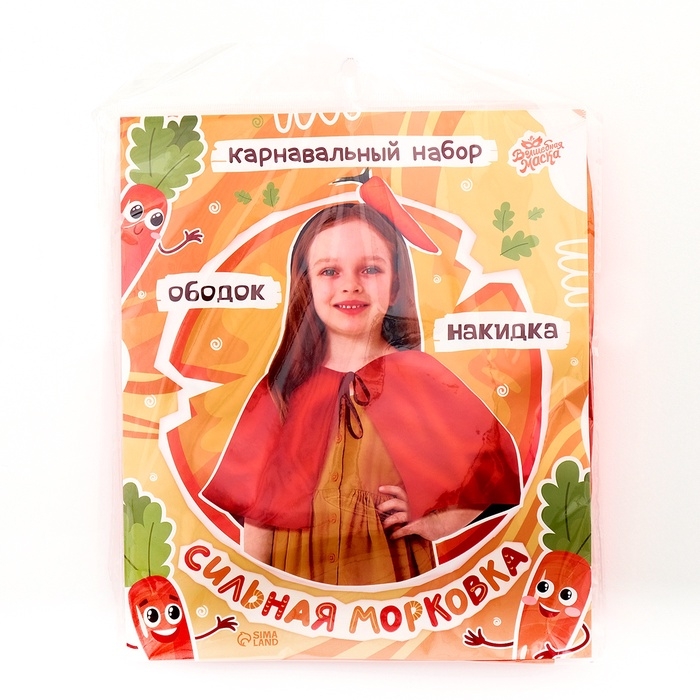 Карнавальный набор «Сильная морковка» превратит вашего ребёнка в самого необычного гостя на любом осеннем празднике. Набор состоит из двух основных элементов: накидки и ободка.
