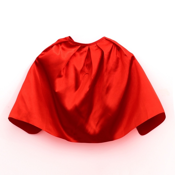 - Накидка. Мягкая и приятная на ощупь накидка из полиэстера красного цвета длинной 40 см. Она легко надевается и фиксируется на шее с помощью завязок. Она создаёт образ помидорки и добавляет образу юного огородника яркости и поднимает настроение.