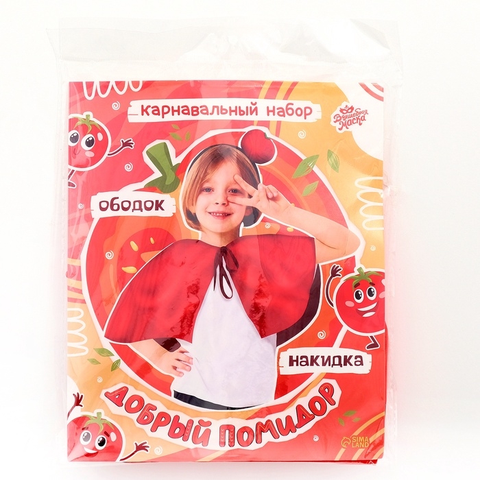 Карнавальный набор «Добрый помидор» превратит вашего ребёнка в самого необычного гостя на любом осеннем празднике. Набор состоит из двух основных элементов: накидки и ободка.