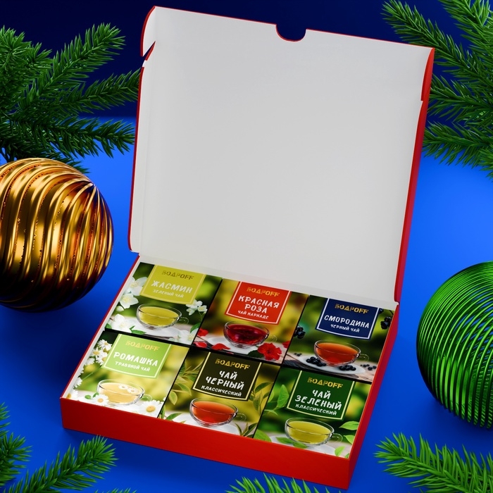 Внутри набора вы найдете 36 пакетиков разнообразного чая, каждый из которых подарит неповторимый вкус и аромат. В этом наборе собраны лучшие сорта чая, которые порадуют даже самых изысканных ценителей. Каждая чашка позволит вам насладиться теплом и уютом, создавая идеальное настроение для встреч с близкими и друзьями.