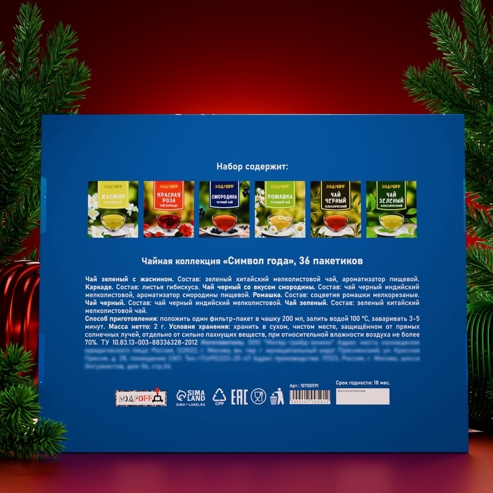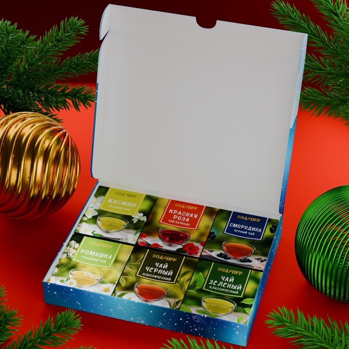 Внутри набора вы найдете 36 пакетиков разнообразного чая, каждый из которых подарит неповторимый вкус и аромат. В этом наборе собраны лучшие сорта чая, которые порадуют даже самых изысканных ценителей. Каждая чашка позволит вам насладиться теплом и уютом, создавая идеальное настроение для встреч с близкими и друзьями.