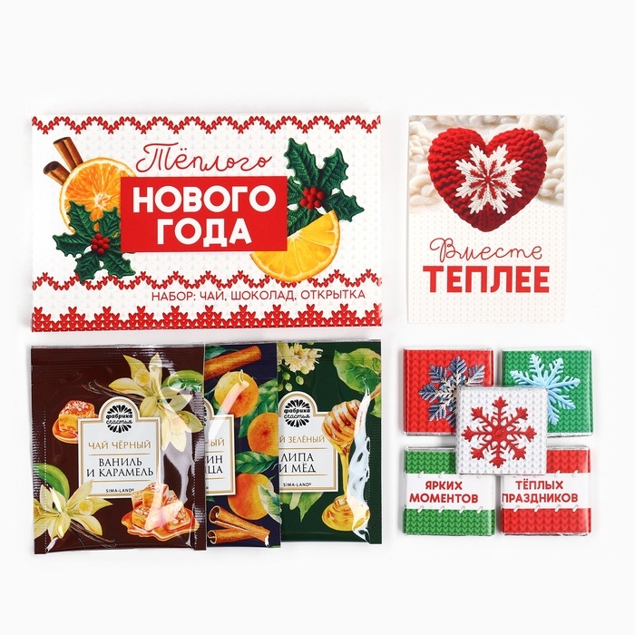 Подарочный набор «Теплого Нового года»: чай, шоколад, открытка