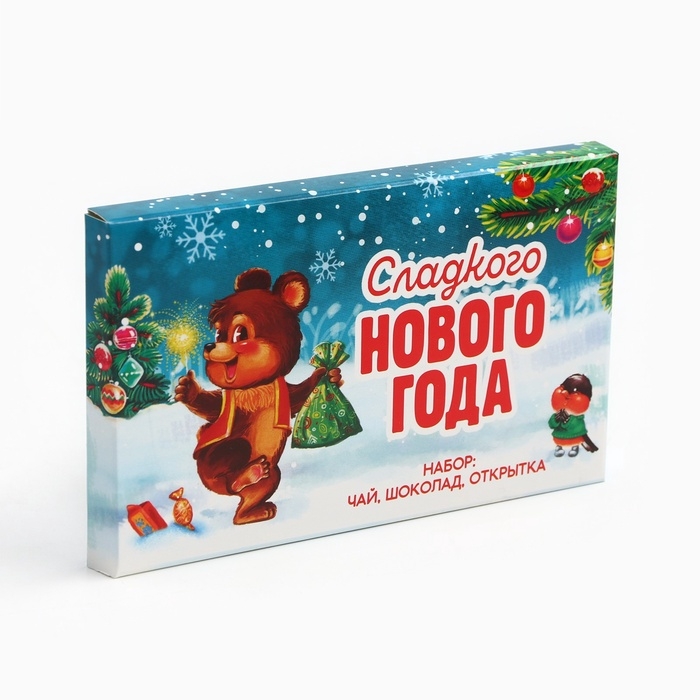 Подарочный набор новогодний «Мишка»: чай, шоколад, открытка