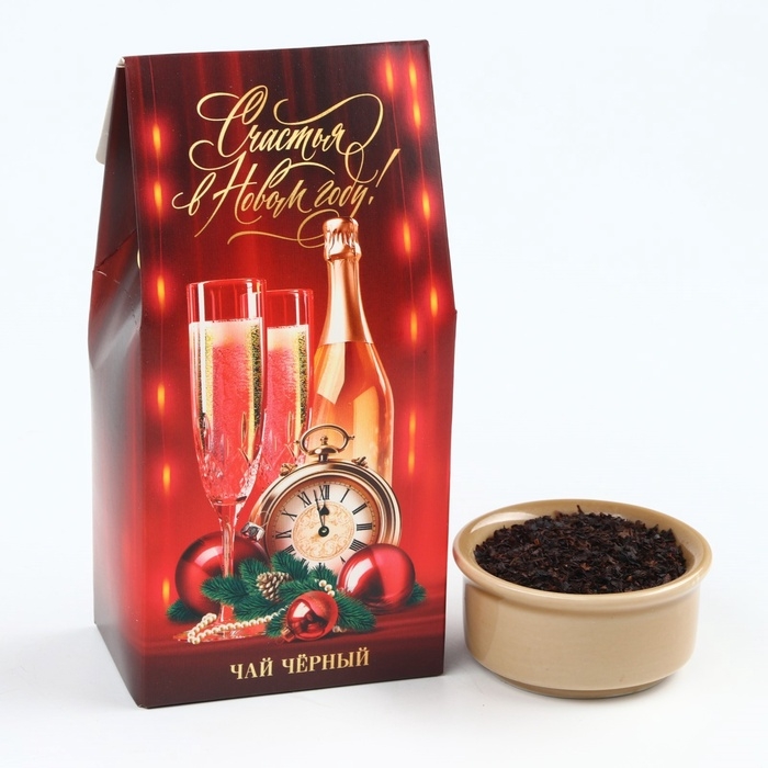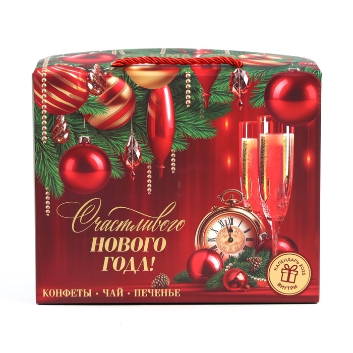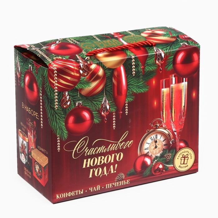 Подарочный набор новогодний «Счастливого года»: чай, конфеты, печенье брауни