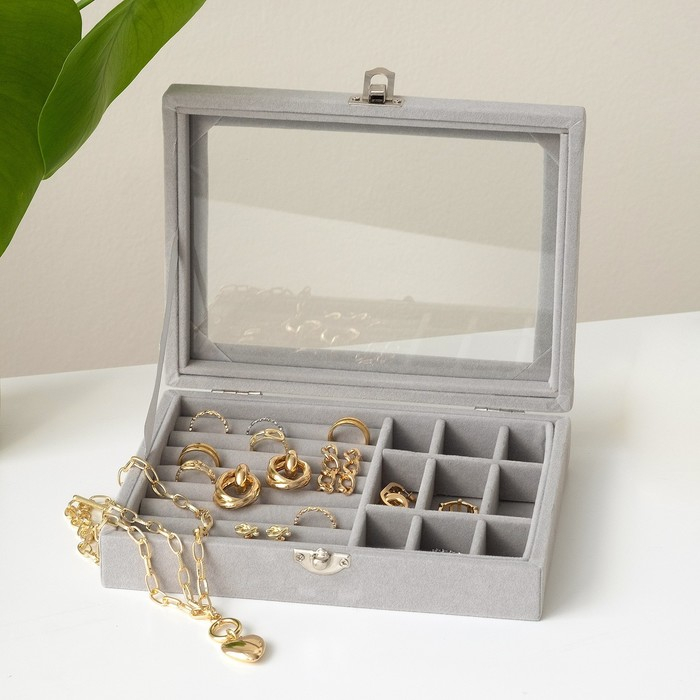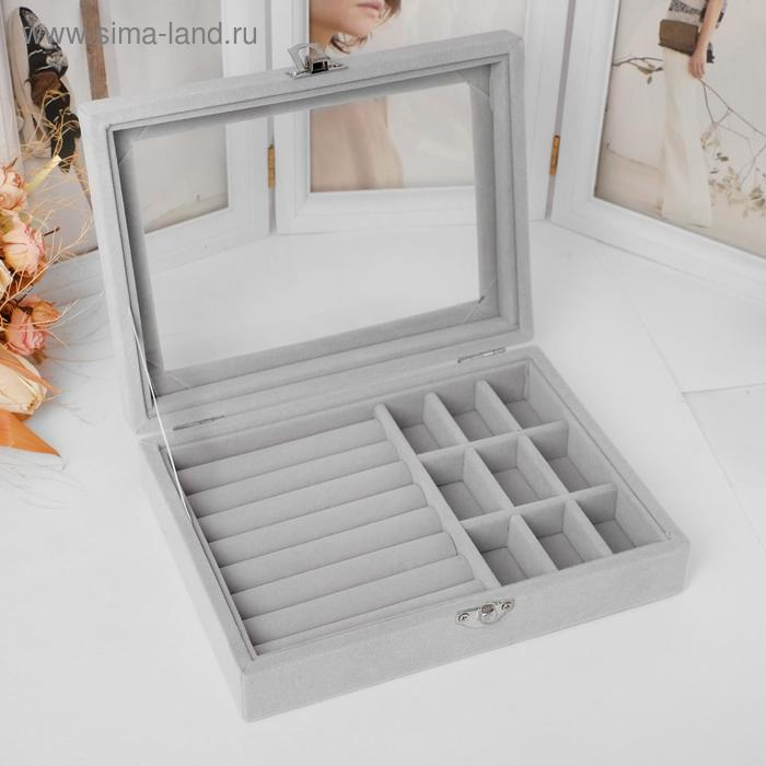 Подставка для украшений «Шкатулка», 7 полос, 9 ячеек, 20×15×4,5, цвет серый