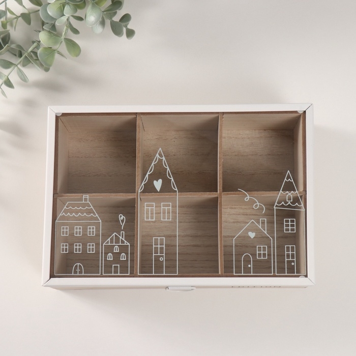 Шкатулка дерево 6 делений "Домики" 16х24х7,5 см
