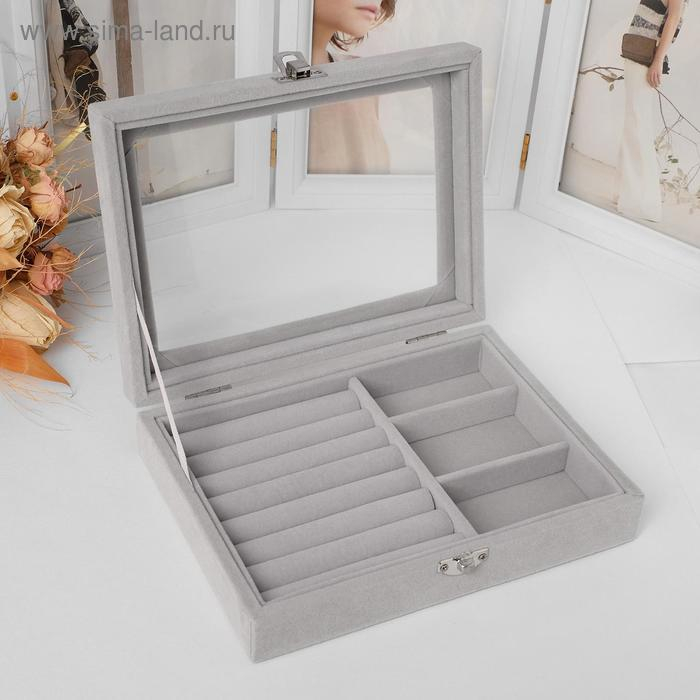 Подставка для украшений «Шкатулка» , 7 полос, 3 ячейки, 20×15×4,5, цвет серый