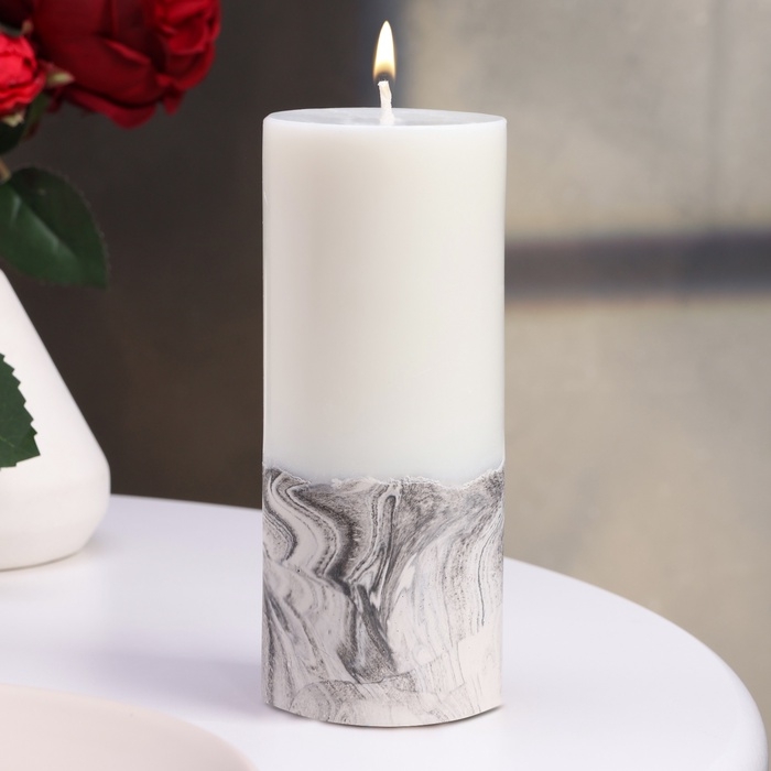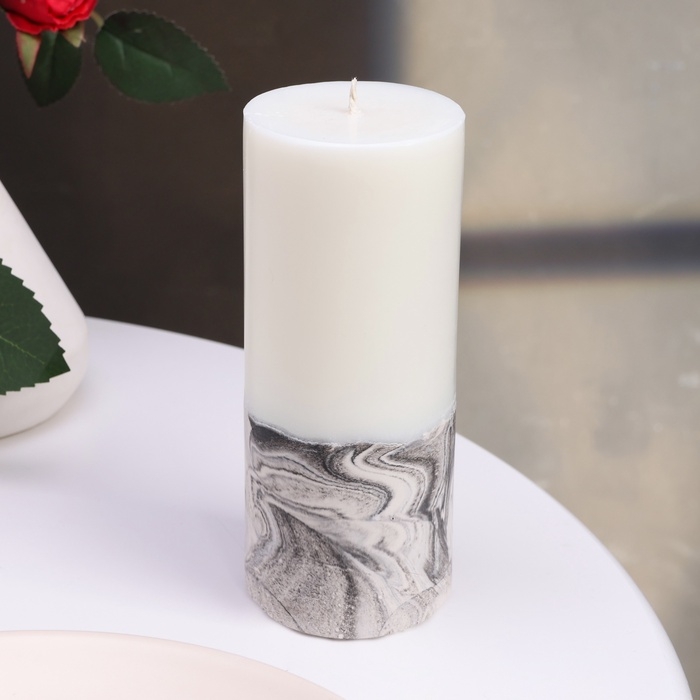 Свеча-цилиндр "Мрамор", 6х15 см, белая