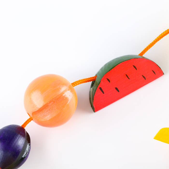 - Игра с бусами развивает мелкую моторику и обучает ребёнка навыкам шнуровки.