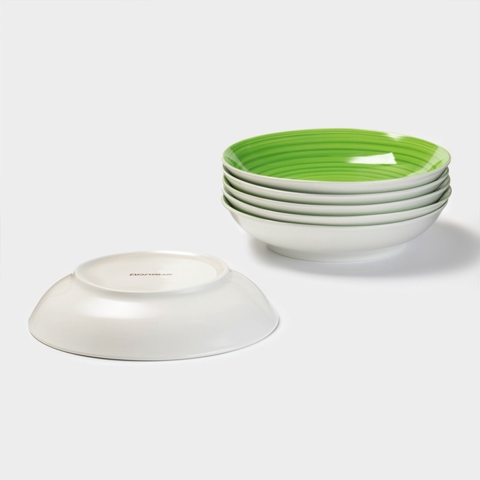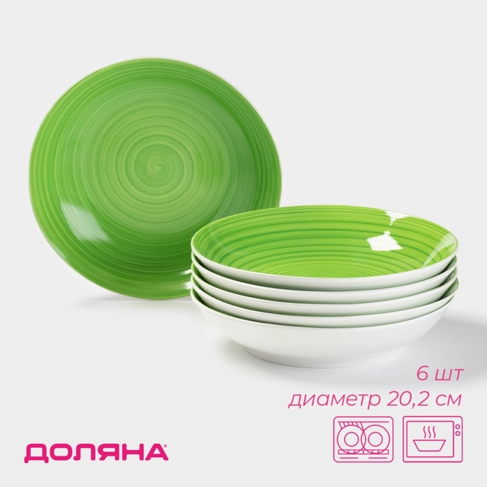 Набор тарелок глубоких Доляна «Палитра», 20,2×4,2 см, фарфор, 6 шт, зелёный