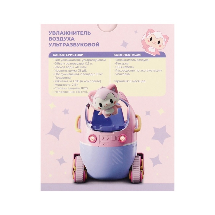 С помощью регулятора интенсивности испарения вы сможете настроить уровень влажности в комнате. А благодаря подсветке кабины и фар, «Луноход» станет настоящим украшением детской комнаты.