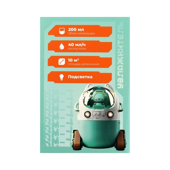 С помощью регулятора интенсивности испарения вы сможете настроить уровень влажности в комнате. А благодаря подсветке кабины и фар, «Луноход» станет настоящим украшением детской комнаты.