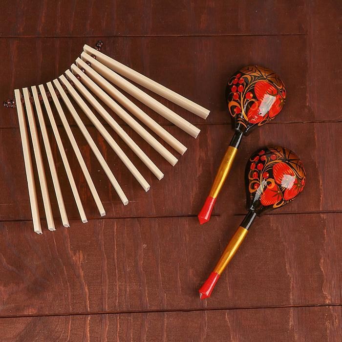 Музыкальный набор №1 с ложками — идеальный выбор для развития детей, который способствует развитию, творческого и музыкального потенциала, слухового восприятия, а также знакомству с русскими народными инструментами.