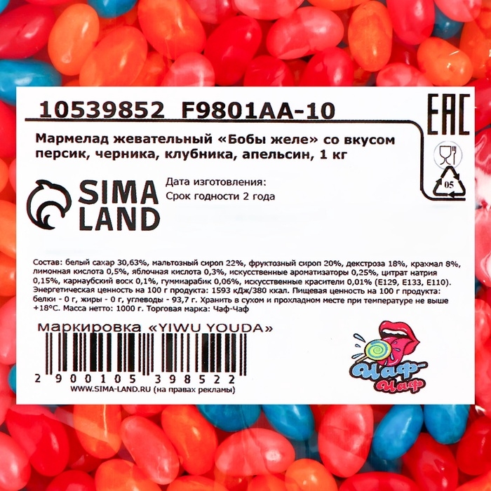 Погрузитесь в мир ярких вкусов и сладких эмоций с жевательным мармеладом "Бобы желе"! Эти аппетитные конфеты в форме бобов создают идеальное сочетание четырех плодовых вкусов, которые сделают каждый момент сладким и незабываемым.