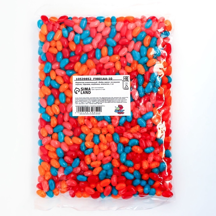 Мармелад жевательный "Бобы желе" со вкусом персик, черника, клубника, апельсин, 1 кг