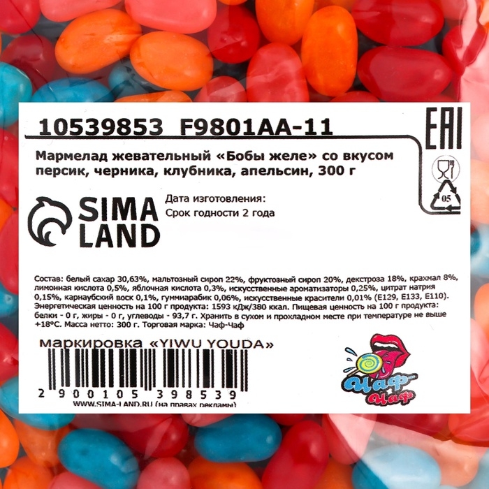 Погрузитесь в мир ярких вкусов и сладких эмоций с жевательным мармеладом "Бобы желе"! Эти аппетитные конфеты в форме бобов создают идеальное сочетание четырех плодовых вкусов, которые сделают каждый момент сладким и незабываемым.