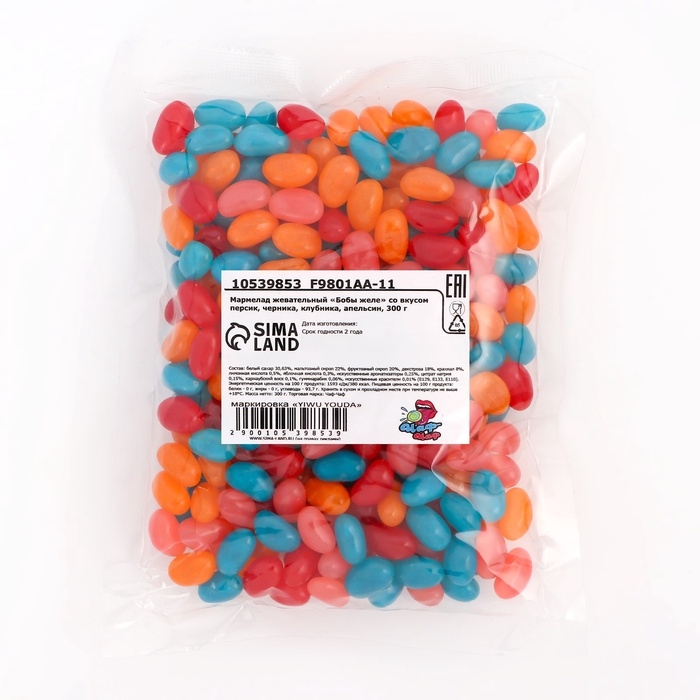 Мармелад жевательный "Бобы желе" со вкусом персик, черника, клубника, апельсин, 300 г