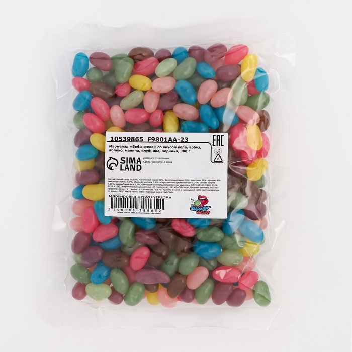 Мармелад "Бобы желе" со вкусом кола, арбуз, яблоко, малина, клубника, черника, 300 г