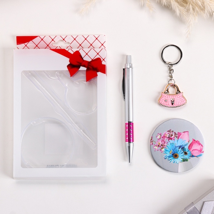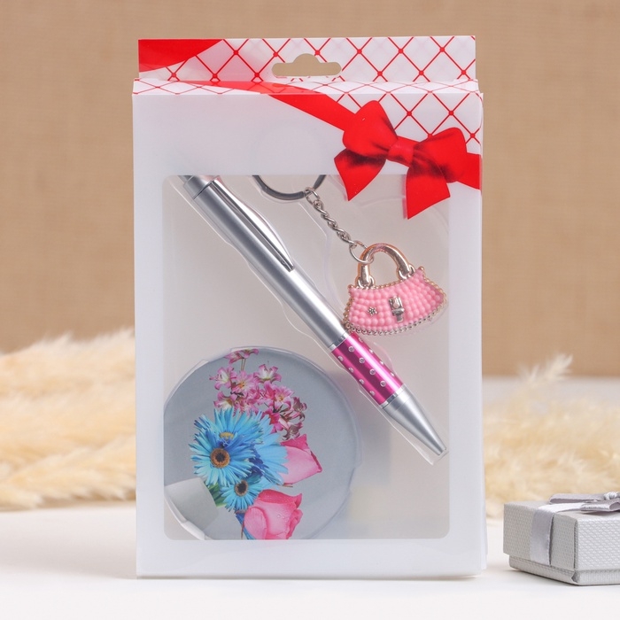 Набор подарочный 3в1 (ручка, зеркало, брелок)