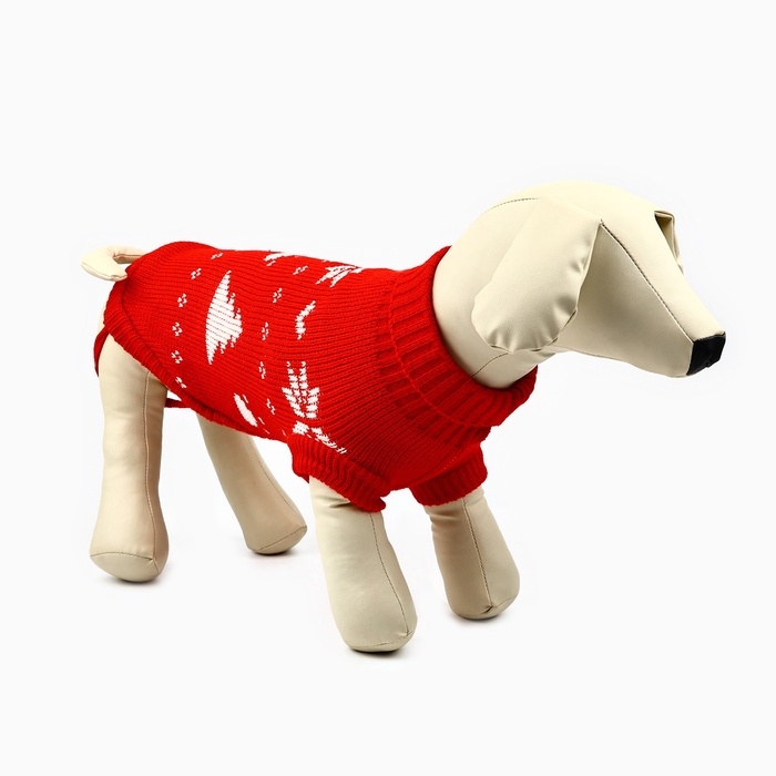 Одежда для собак. Свитер вязаный с орнаментом «Новогодний», красный, размер S