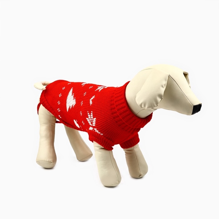 Одежда для собак. Свитер вязаный с орнаментом «Новогодний», красный, размер M