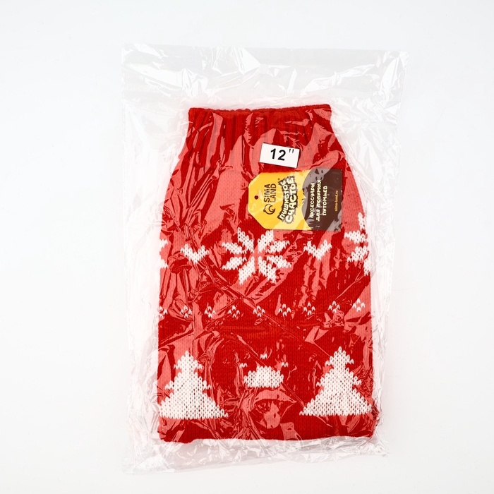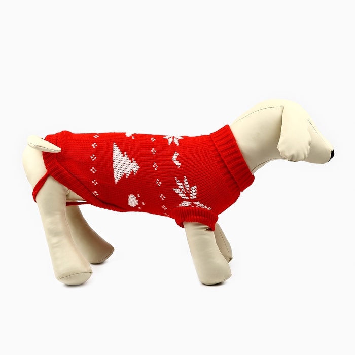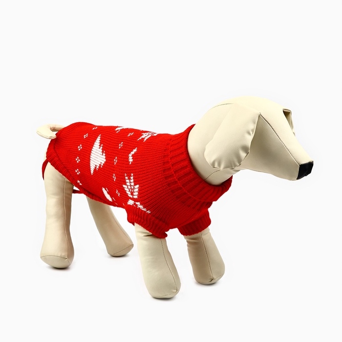Одежда для собак. Свитер вязаный с орнаментом «Новогодний», красный, размер XL