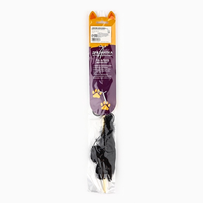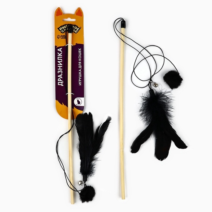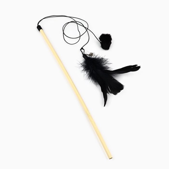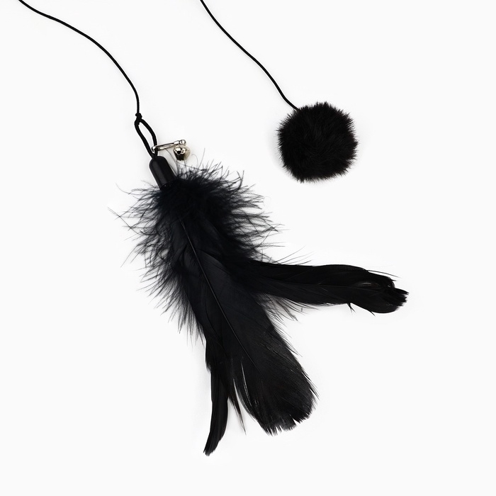 Игрушка дразнилка для кошек с пером и помпоном «Кошечка», черный