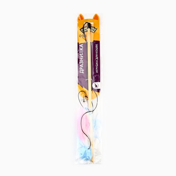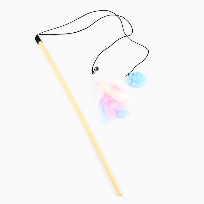Дразнилка с цветным шариком и перьями, 49 см, палочка микс цветов