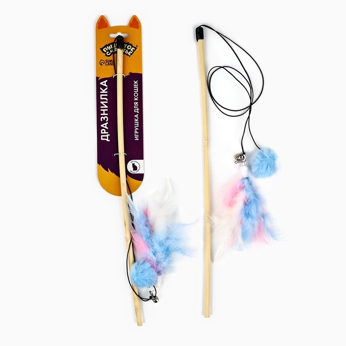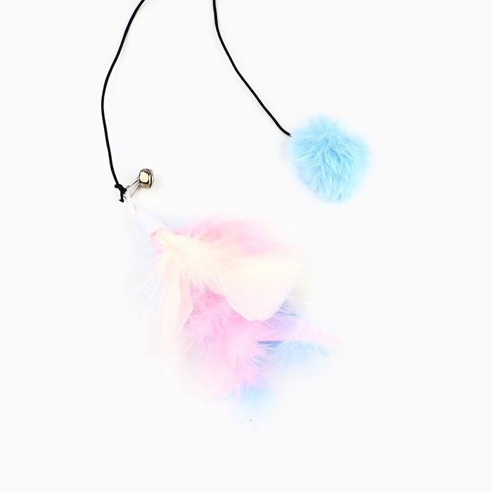 Игрушка дразнилка для кошек с пером и помпоном «Кошечка», голубой