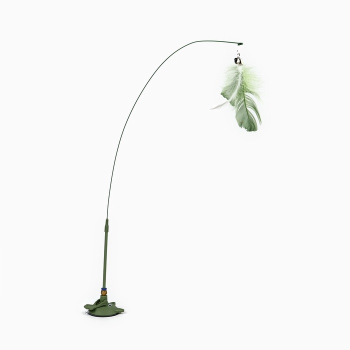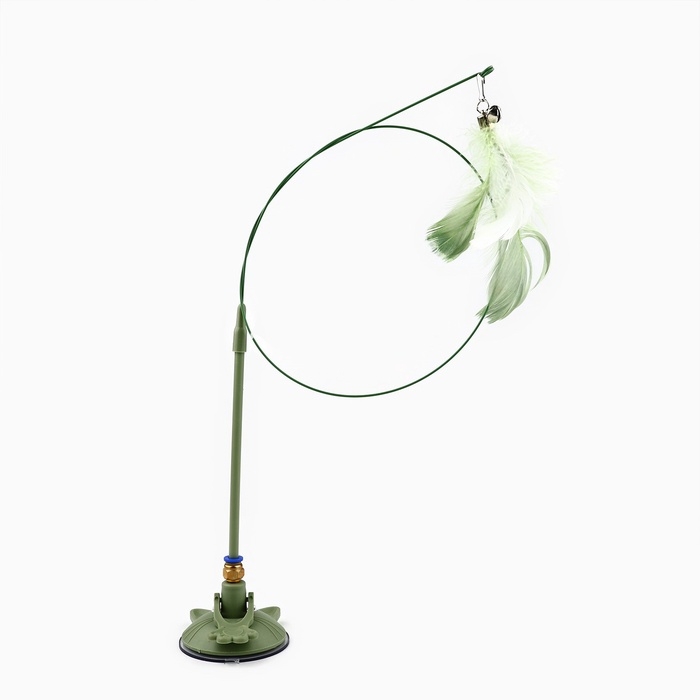 Игрушка дразнилка для кошек на присоске с пером «Котик», зелёный, 94 см