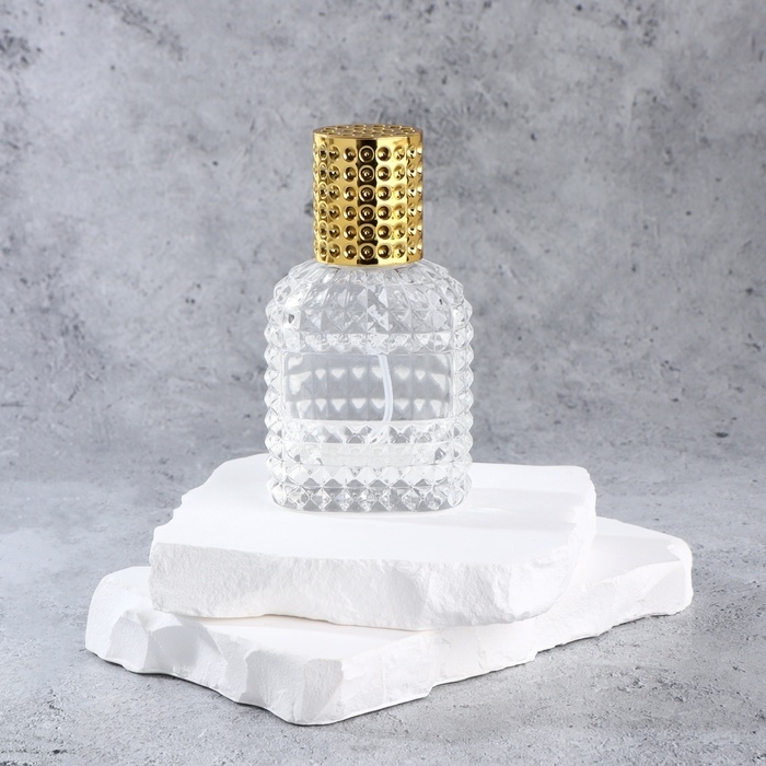 Флакон для парфюма, с распылителем, стеклянный, 30 мл, цвет прозрачный/золотистый