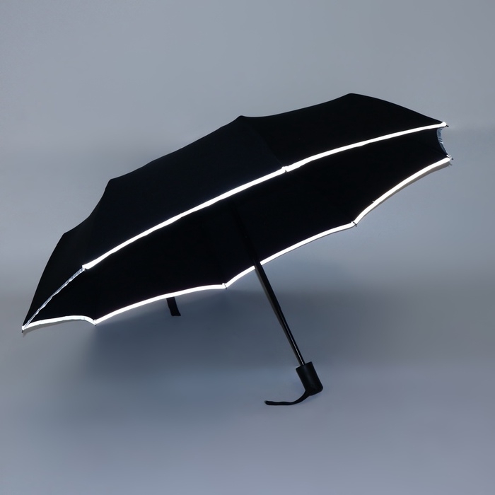 Зонт автоматический «Однотонный», со светоотражающей каёмкой, 3 сложения, 8 спиц, R = 46/55 см, D = 110 см, цвет чёрный