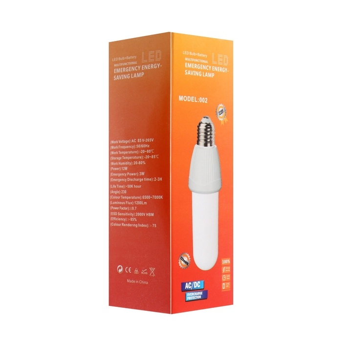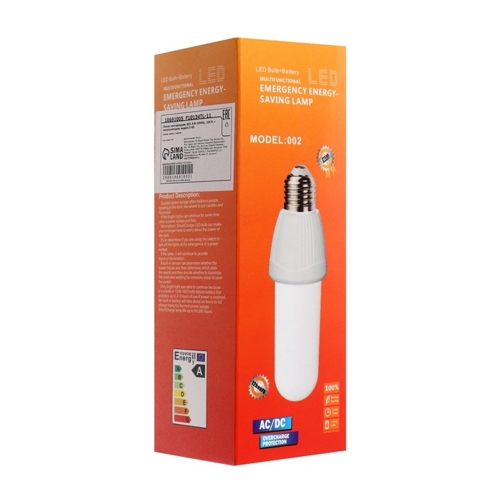 Лампа светодиодная, Е27, 9 Вт, 6500К, 220 В, с аккумулятором