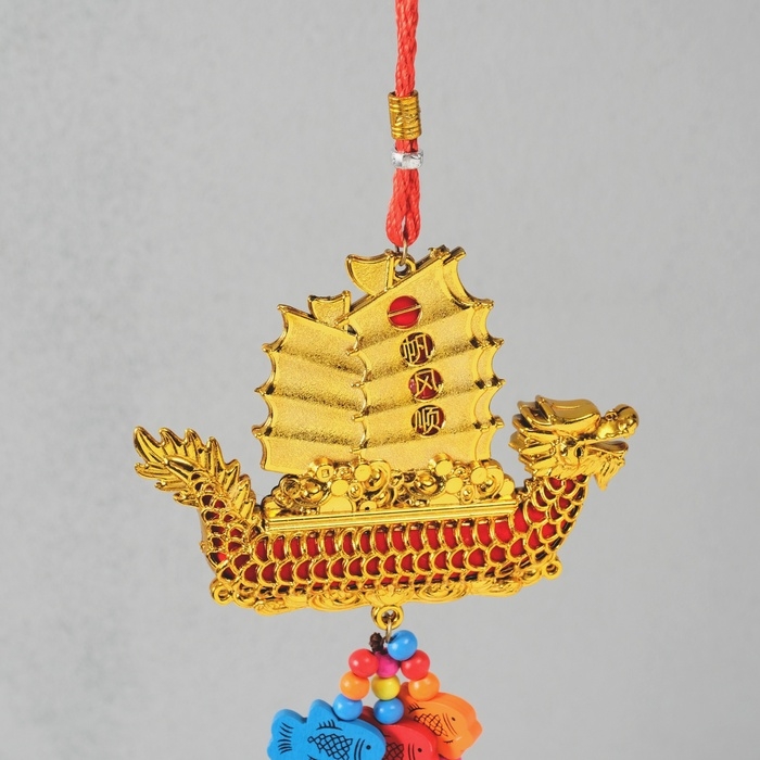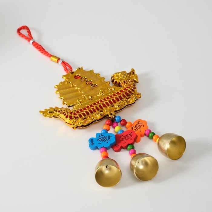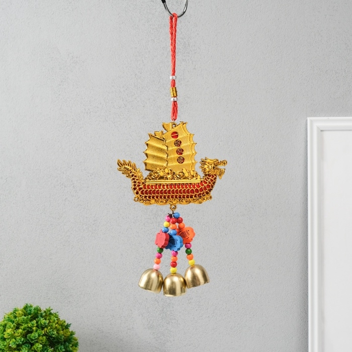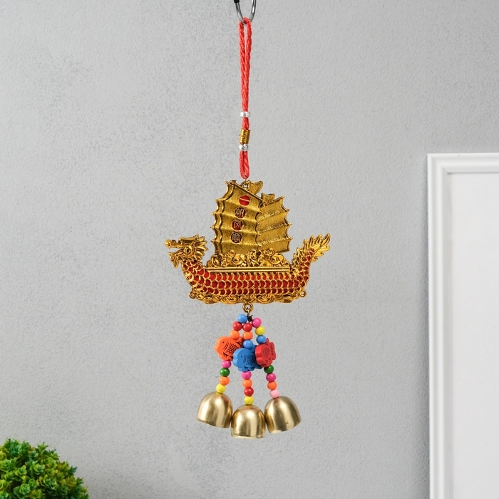 Колокольчик металл "Корабль золотой дракон - богатство" 3 колокольчика 13х31,5 см