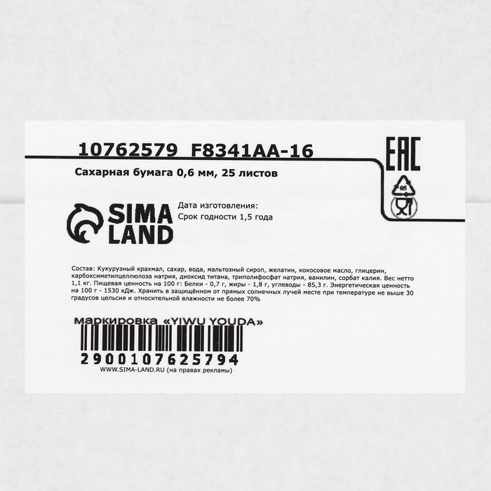Сахарная бумага 0,6 мм, 25 листов
