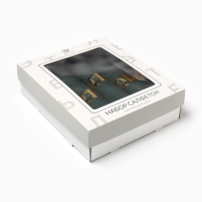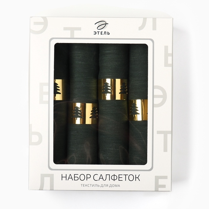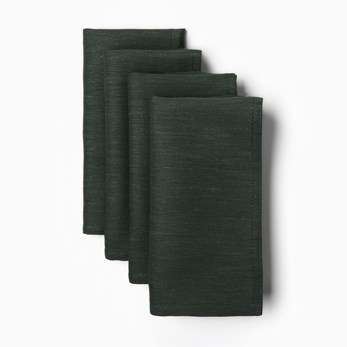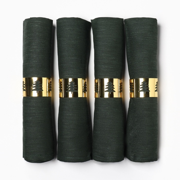 Набор сервировочных салфеток с декоративными кольцами Этель Green 40х40 см - 4 шт, 100% лён