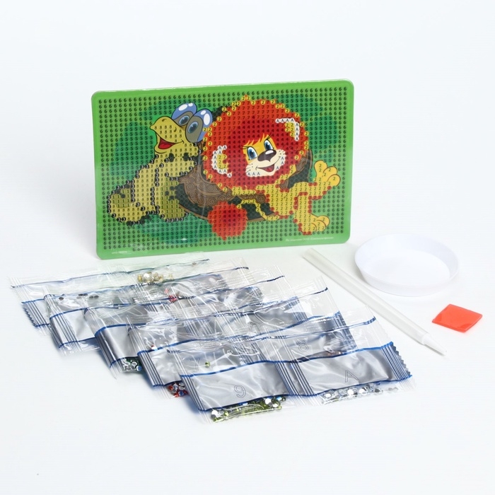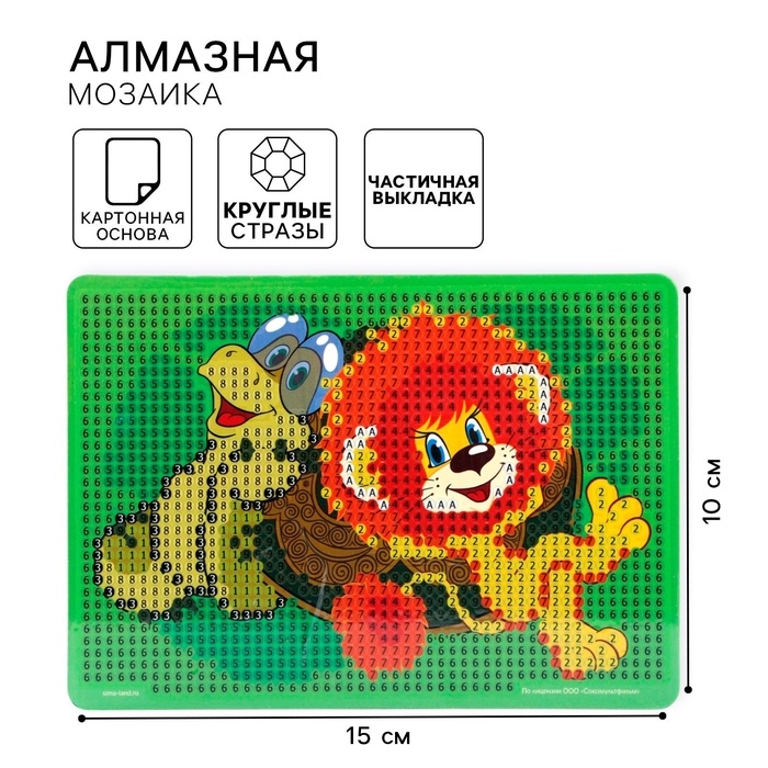 Алмазная мозаика с частичным заполнением для детей «Львенок и Черепаха», 10 х 15 см